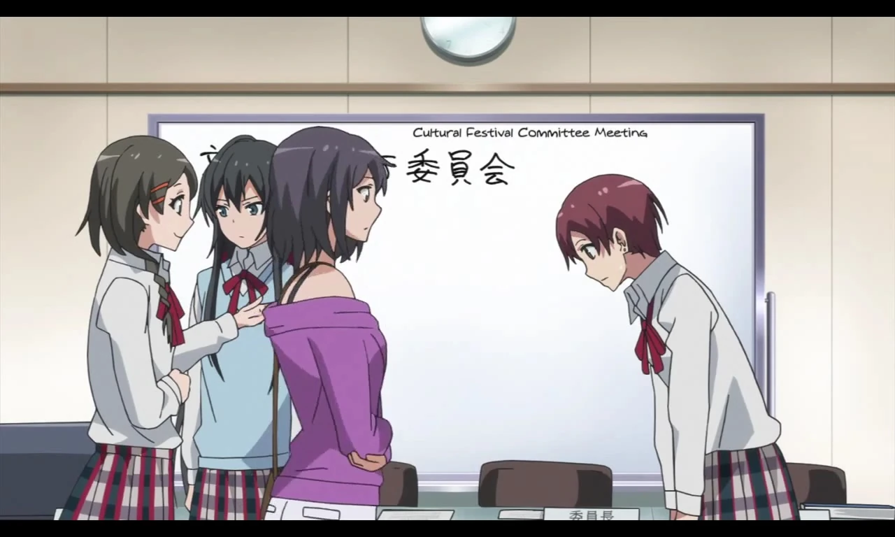 After their encounter at the fireworks festival, Hachiman tried to just ignore her but was dragged into matters when they were chosen to be the male and female representatives for the Culture Festival planning committee. Hachiman is the first member of the entire committee to point out to everyone how much most of them (especially Minami) were irresponsibly using Hachiman and Yukino to slack off.