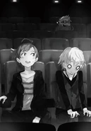 In the theatre, Hachiman notices its mostly student over summer break and briefly sees Yumiko with some friends and Zaimokuza alone in the front row. Hachiman isn't really paying attention to the movie, as he is too happy being with Totsuka.